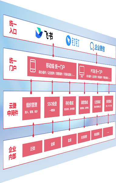 对协作平台提供支持服务,,支持企业应用与协作平台对接,,,,包含组织同步、、、、消息集成、、、待办集成等。。。。支持目前主流的协作平台:钉钉、、、、企微和飞书。。
